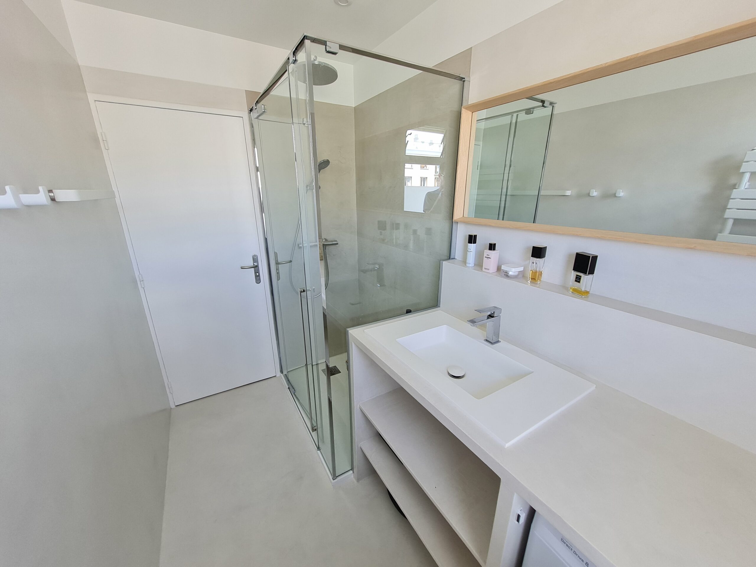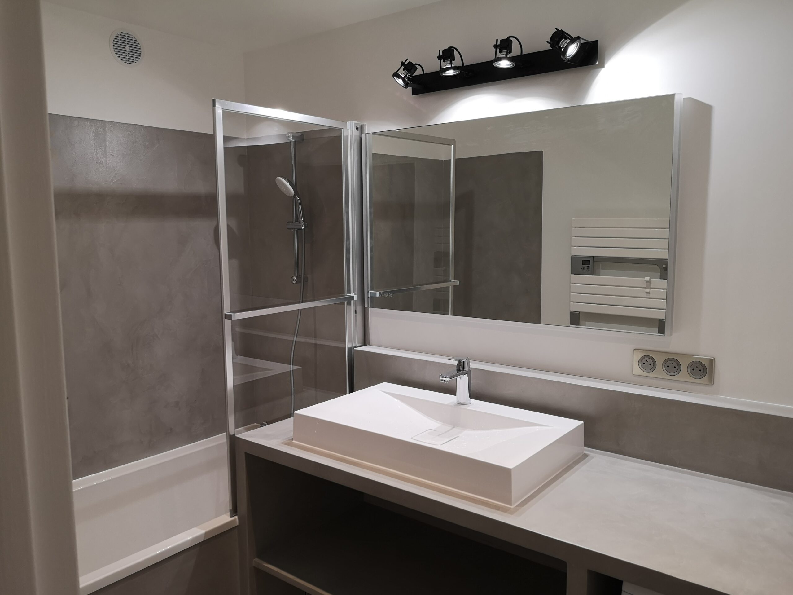 Nous avons fait appel à la société ObétonCiré pour refaire entièrement notre salle de bain. Merci à Olivier et son équipe pour le travail réalisé dans si peu d’espace et sans fenêtre, Un véritable challenge ! Le béton ciré est juste magnifique.
