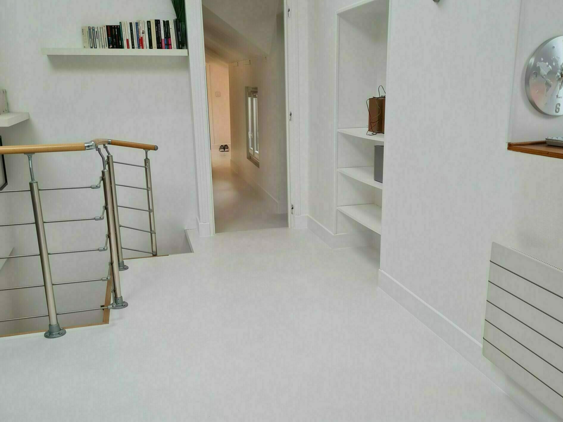 Rénovation effectuée dans notre maison avec modification de l’agencement de l’entrée, cuisine et WC (démolition, pose nouvelles cloisons et huisseries extérieures, électricité, plomberie, peinture et bien-sûr béton ciré au sol).
