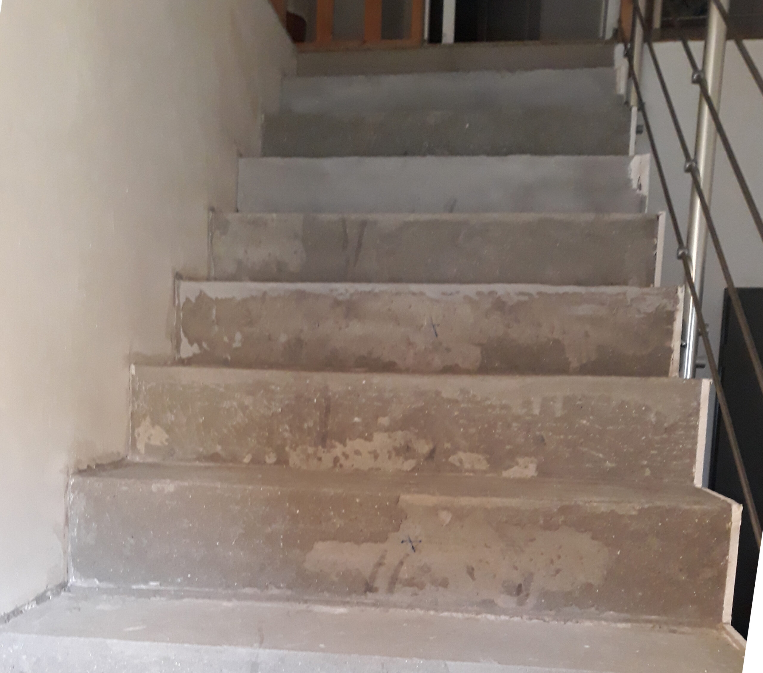 Pour ce projet assez classique (recouvrir un escalier maçonné en béton ciré taloché), il a fallu une préparation rigoureuse et adaptée.