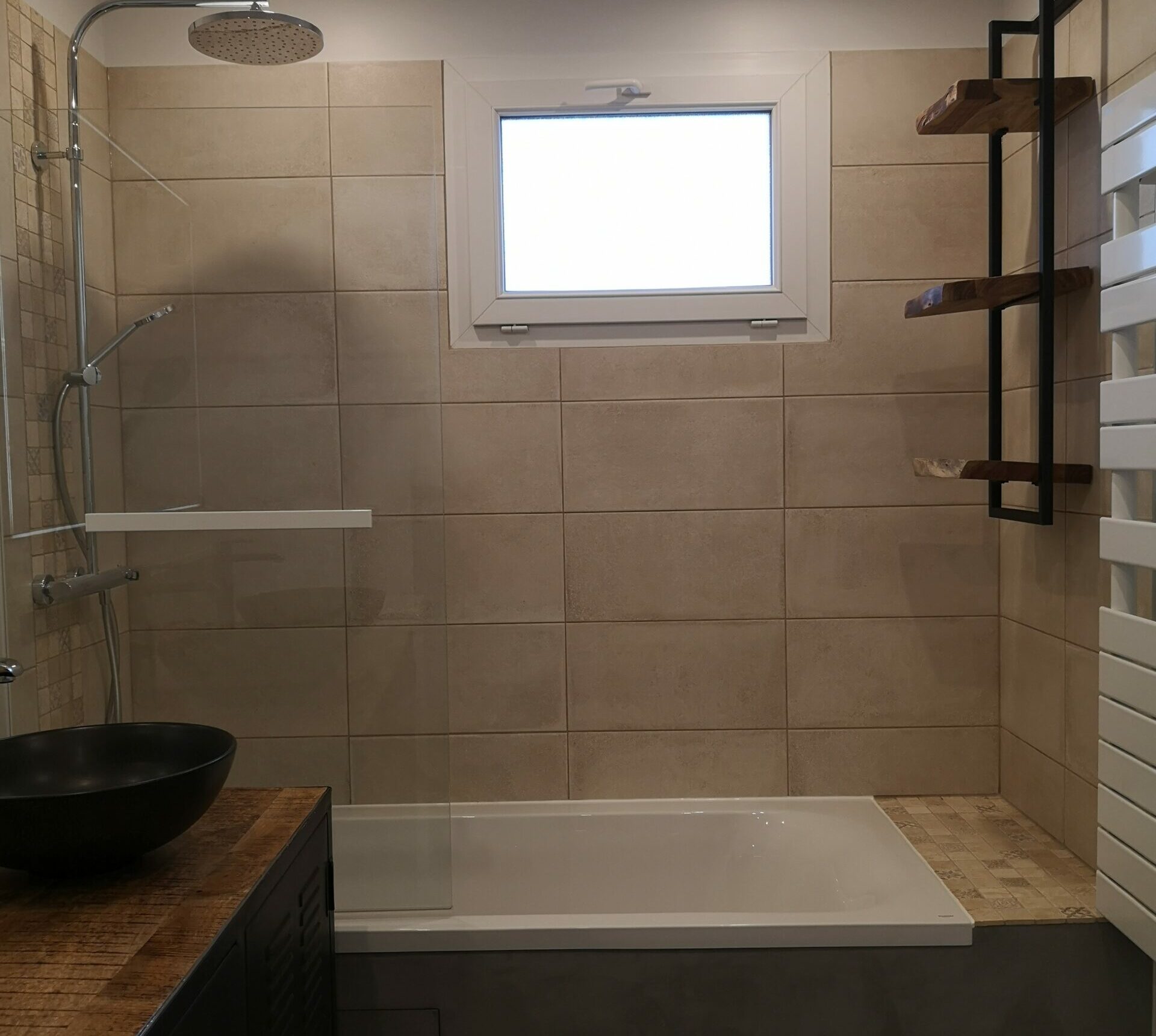 Après quelque semaines de travaux divers (plomberie, carrelage, béton cire, enduit, peinture…) le chantier était livré.